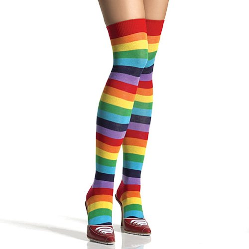 You'll have more than enough people wondering what's over the rainbow when you slip into these vividly-colored thigh highs. Goes great with many lingerie costumes, and ideal for when you want to draw some extra attention to you legs. Dimensions: 6¼" x 4" (pkg)