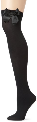 Leg Avenue Women's Opaque Thigh High with Satin Bow,Black