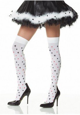 Opaque Thigh High Nylon Stocking with Poker Suit Prints