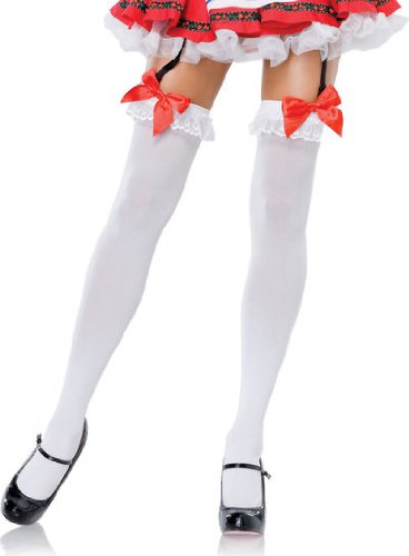 Leg Avenue Women's Opaque Thigh-High Stocking With Chiffon Ruffle And Satin Bow, White/Red, One Size